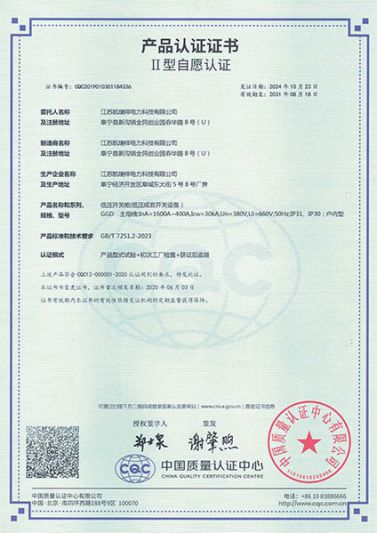 • GGD1600A-400A-產品證書